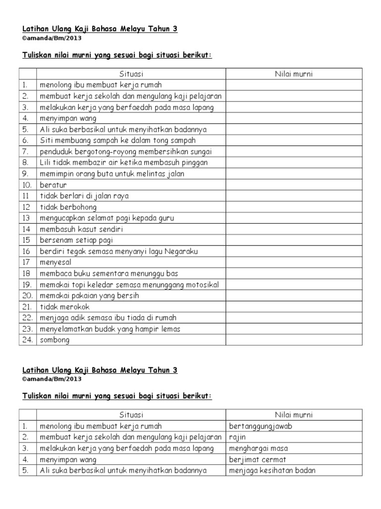 17 Nilai Murni Yang Utama from image.slidesharecdn.com Latihan nilai murni by pei fen tong 2744 views. Latihan nilai murni (bahagian c) dengan contoh jawapan (3). Bertugas di sk ayer lanas, jeli, kelantan. Nilai nilai murni 2 by siti norbaya 271 views. Start studying nilai murni 2. Nilai murnibahasa malaysia tahun 3. Kita seharusnya perihatin dengan keadaan dan masalah yang berlaku di sekeliling kita. Dari 414.202 siswa, ada 1.671 orang yang tidak lulus.